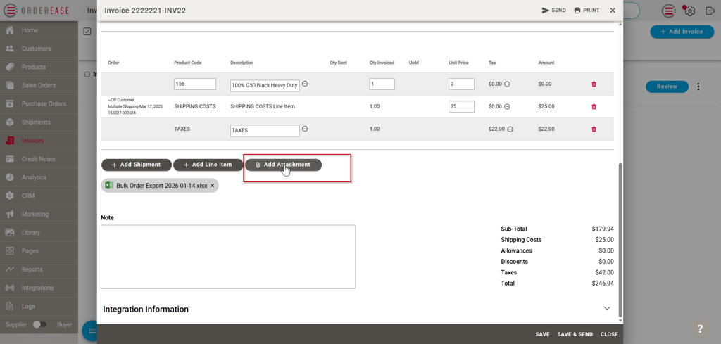 In addition to invoice independence, OrderEase now supports direct file attachments at the invoice level.